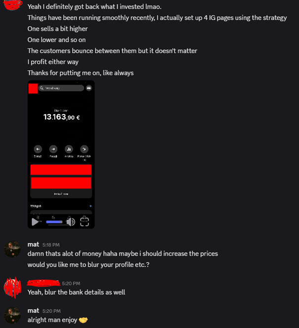 "Things have been running smoothly recently. I set up 4 IG pages using the strategy. One sells a bit higher, one lower etc. The customers bounce between them but it doesn't matter, I profit either way."